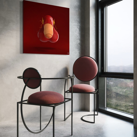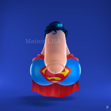 « Cette série s’appelle « Hérorigine ». C’est la partie qu’on ne voit jamais du super héros, et moi je voulais revenir à l’origine des super héros, comme en clin de d’œil à « L’origine du monde » de Gustave Courbet … mais version POP » ADAM
